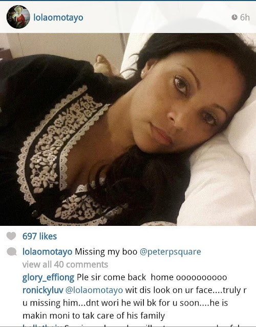 Lola Omotayo shares lonely photo, says she misses her boo Peter Okoye
